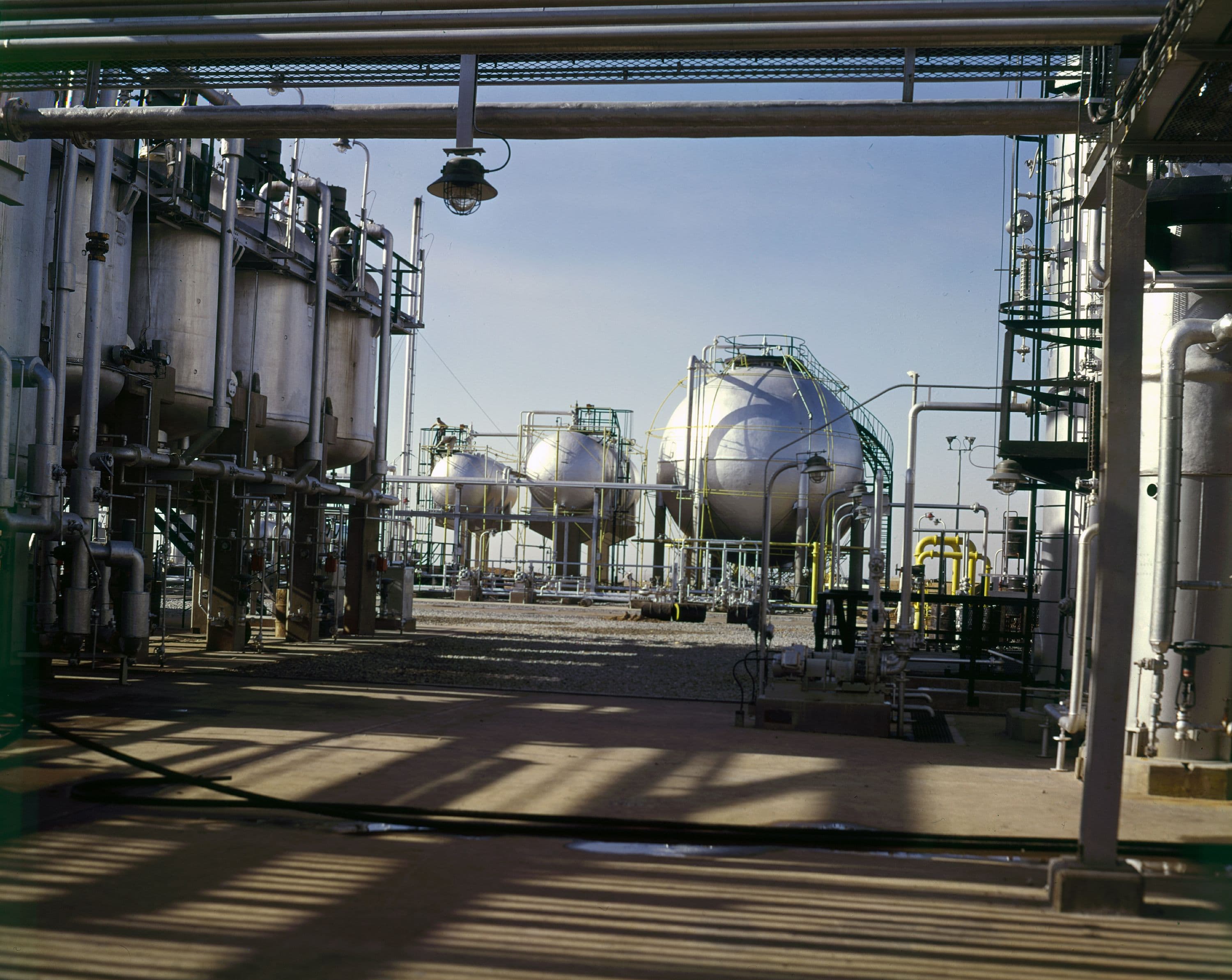 The two plants include 100 heaters, 2,000 vessels, 2,000 heat exchangers, 3,000 pumps and miles of piping. The plants consume 1,500 megawatts of electrical power, and each 750-megawatt system includes enough power cable to run from Los Angeles to New York and back to Kansas City.